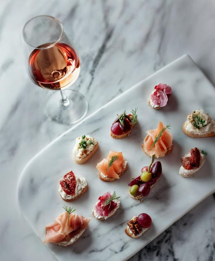 Nuestro rosado es el toque chic para tu ensalada de gambas y canapés. Frescura y sabor en cada brindis.